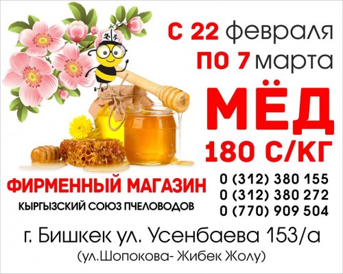 С 16 февраля по 3 марта мёд от 220сом/кг
